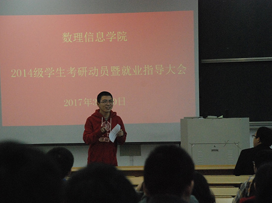 2014级学生考研动员暨就业指导大会在综合楼A203举行。逼喱逼喱
