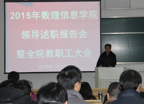 召开2015年中层领导干部述职报告会。华小洋副校长主持报告会,逼喱逼喱