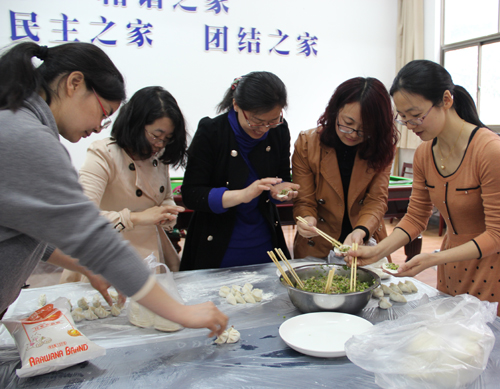 “教工之家”活动室内香气四溢、欢声笑语,一盘盘美味家常菜或精致创意菜令人垂涎,大家自己动手包出来的水饺热气腾腾,一场以“交流切磋厨艺,提高家庭经营技能,建设和谐家庭”为主题的“三•八”国际劳动妇女节庆祝活动在此举行。
