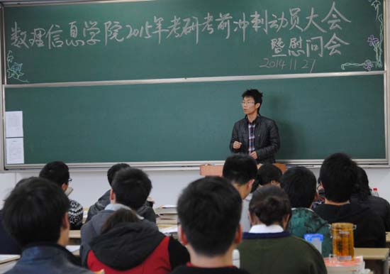 此次考前冲刺动员暨慰问会的召开正值2015年全国硕士研究生招生考试前一个月,进一步坚定了考研同学的信心,鼓足干劲进行最后的冲刺。