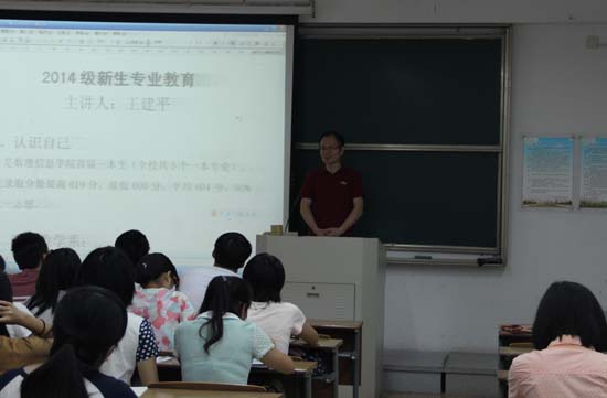 各专业顺利开展了2014级新生入学专业教育。新生入学专业教育是学生进入正式专业学习之前不可或缺的“预备课”。借助入学专业教育,新生能够详尽了解到“本专业学什么”、“本专业怎么学”、“本专业朝哪方面就业”等关键问题,为新生未来的四年的学习指明方向。