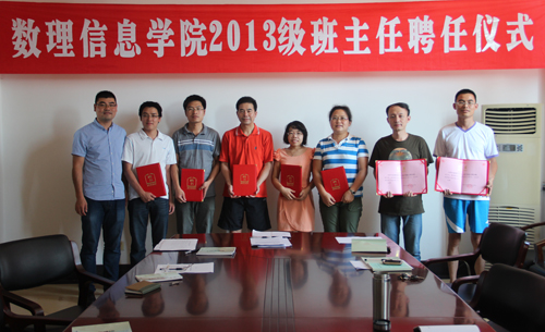 在317会议室隆重举行了2013级新生班主任聘任仪式,出席此次会议的有院党委副书记朱良、7位新生班班主任和全体辅导员老师,会议由学生科副科长邱科强老师主持。