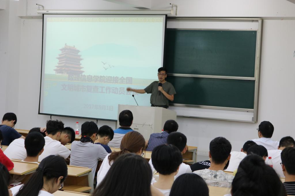 在综合楼A203召开2015、2016级学生全国文明城市复查工作动员大会。逼喱逼喱