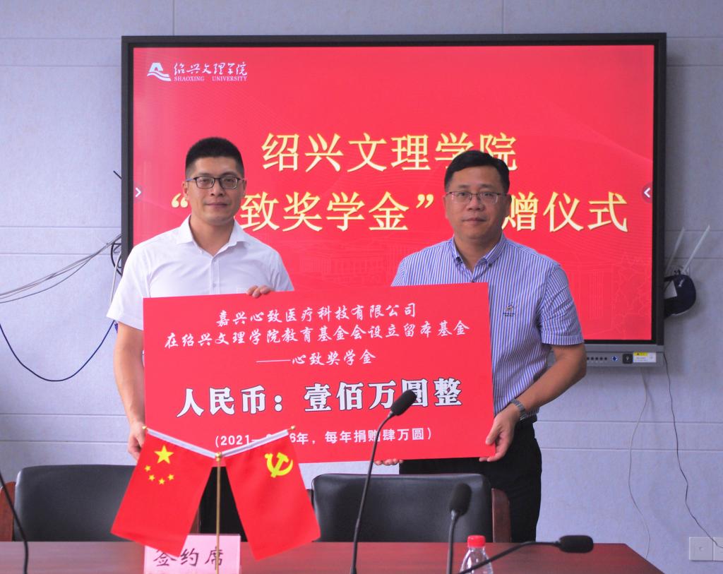2021年6月22日上午,“心致奖学金”捐赠仪式在南山校区1号楼举行。嘉兴心致医疗科技有限公司总经理夏柱流、逼喱逼喱
