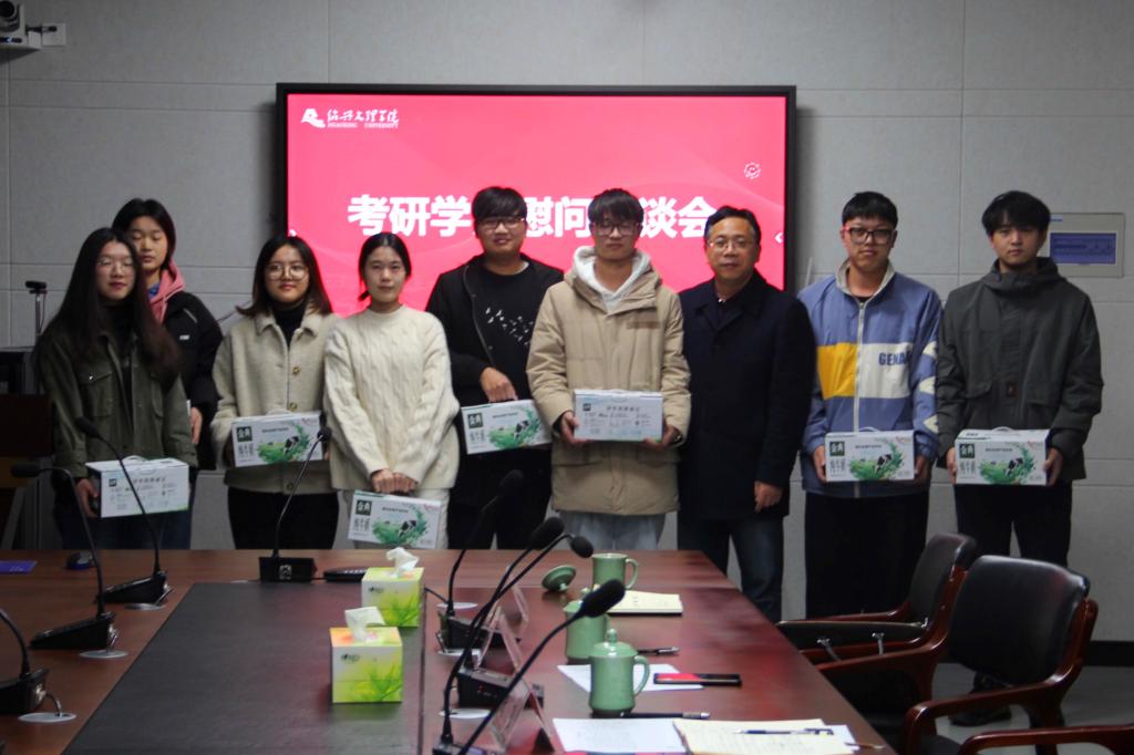 慰问会最后,柳校长勉励考研学生:要抓住最后30天的考研冲刺期,希望大家既要明确目标、坚定信心,注重学习方法,提高学习效率,又要注意劳逸结合,注意身体,调整心态,在学会享受考研的过程中,有条不紊地打赢考研这场攻坚战!并向现场的考研学生代表送上了慰问品。