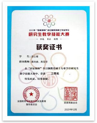 学科教学(数学)专业20级硕士生沈心媛以优异的表现获得了三等奖。据悉,本次大赛共计138所学校2436名选手参加,最终750名选手入围决赛。