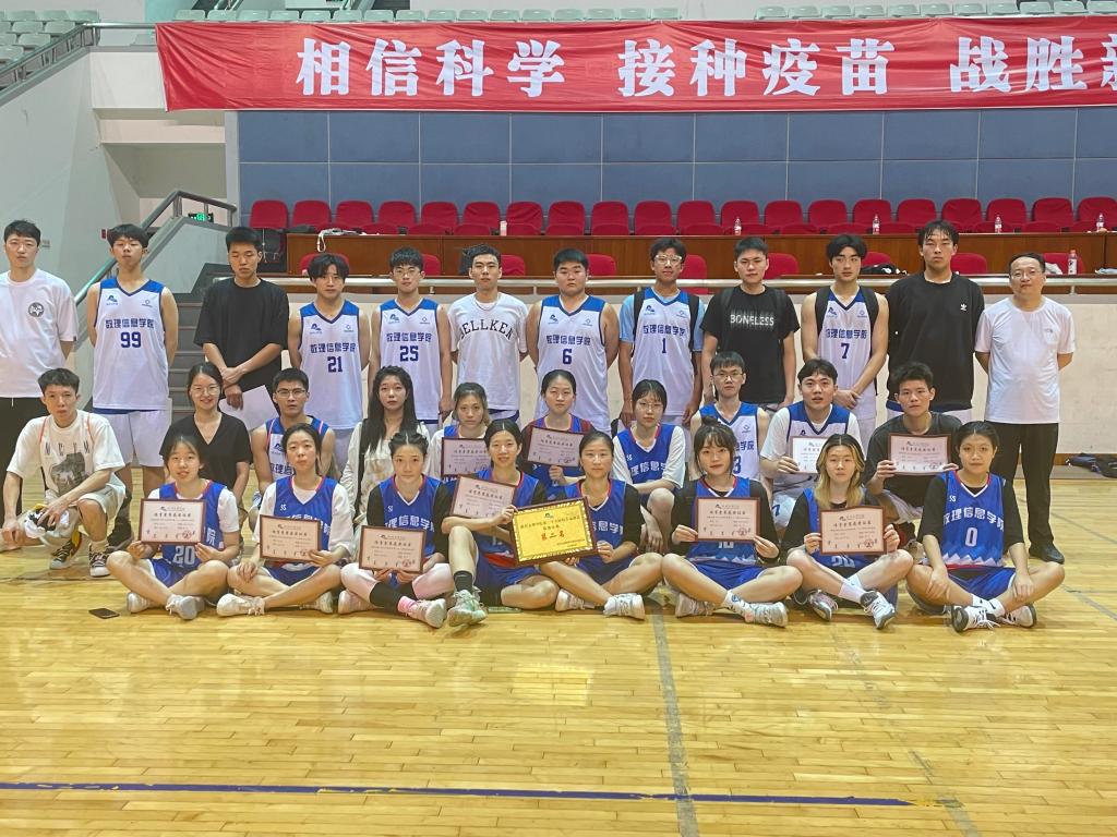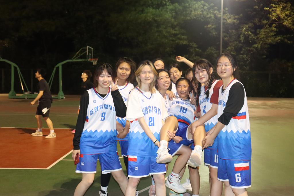 鲍晗露:2019年我第一次参加校篮球赛,当时还是3v3的比赛。全校20支女篮队伍,数理占了三个,最后却是靠着规则,靠着积分的累加,拿到了第三名。2020年,疫情之下,校赛未曾举办,白白一年失去了比赛,送走了一批学姐。2021年,依旧是3v3的比赛,女篮分出了两支队伍。这一次,规则的更改意味着不可能再通过19年的方式获得前面的名次,最后我们凭借实力获得了第三名。2022年,比赛改成了5v5,女篮以一支队伍的形式参加了比赛。