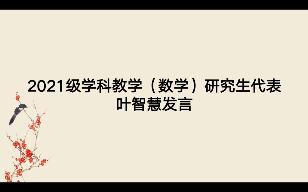 本科实习生代表数学与应用数学(师范)191班王柏淋同学和研究生实习生代表学科教学(数学)2021级叶智慧同学也分别表态发言。她们讲述了自己对于实习的看法,表示会尽快适应环境的变化、完成身份的转换,牢记“学高为师,身正为范”的师训,以积极的心态、饱满的热情和坚韧的意志应对此次教育实习,在磨练中不断成长、不断提升,为成为一名优秀的教师不断充能蓄力。