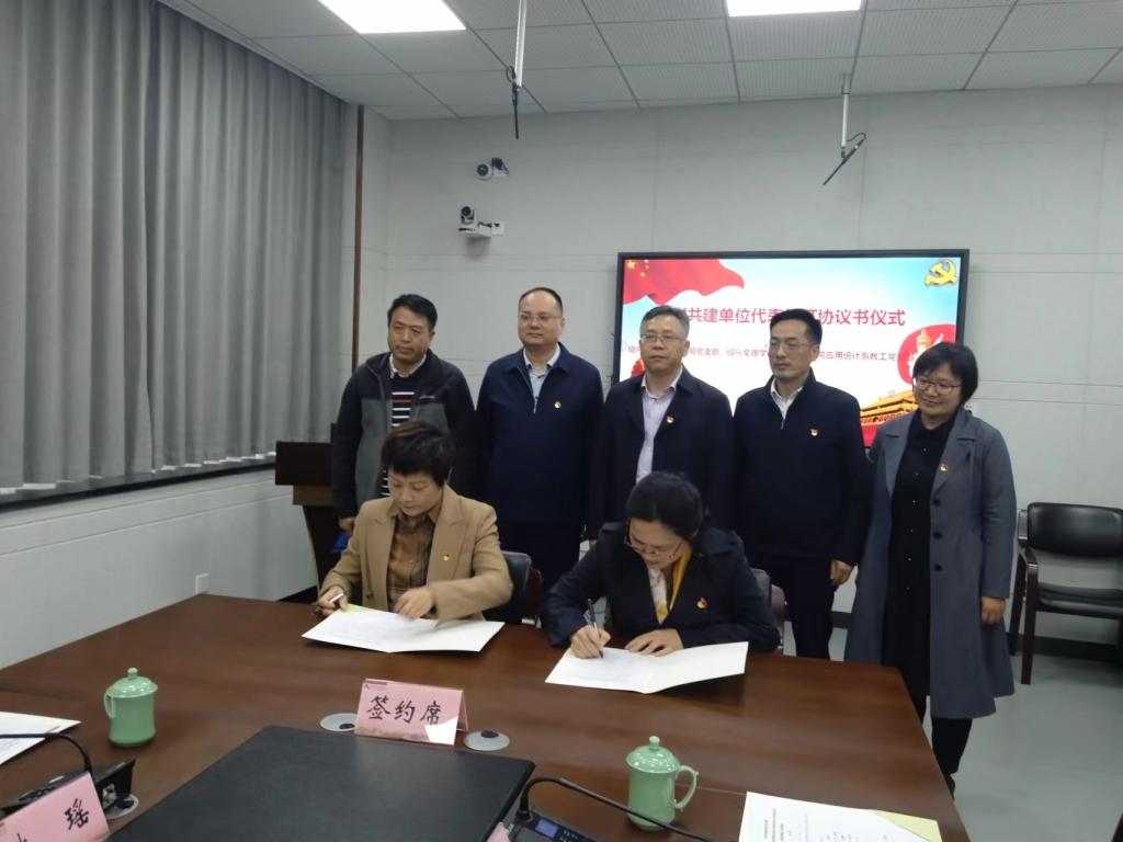 应用统计系教工党支部、绍兴市数学会党小组关于共同推进“校地党建契约化工程”意向书》,并就下一步开展党建融合工作进行了深入交流研讨。