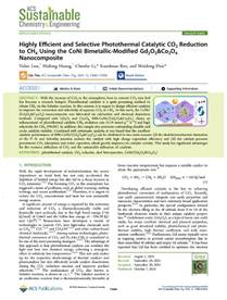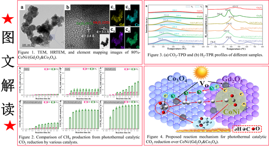 低维材料团队题为‶Highly Efficient and Selective Photothermal Catalytic CO2Reduction to CH4Using CoNi Bimetallic ModifiedGd2O3&Co3O4Nanocomposite″的研究成果。《美国化学会可持续化学与工程》(ACS Sustainable Chem. Eng.)是美国化学会旗舰期刊,被公认为国际能源催化领域的知名学术期刊之一,目前影响因子为7.1,属于化学学科Top期刊、中科院1区期刊。逼喱逼喱