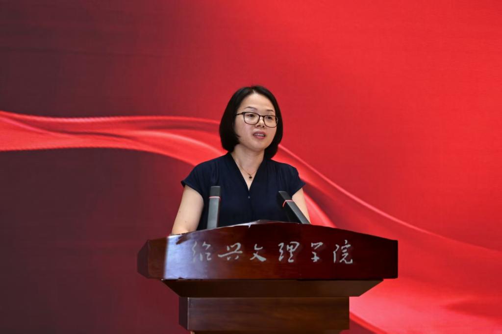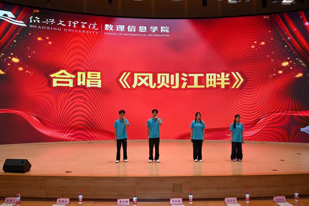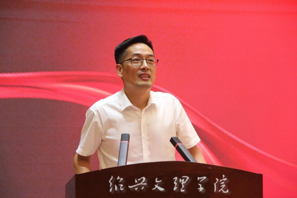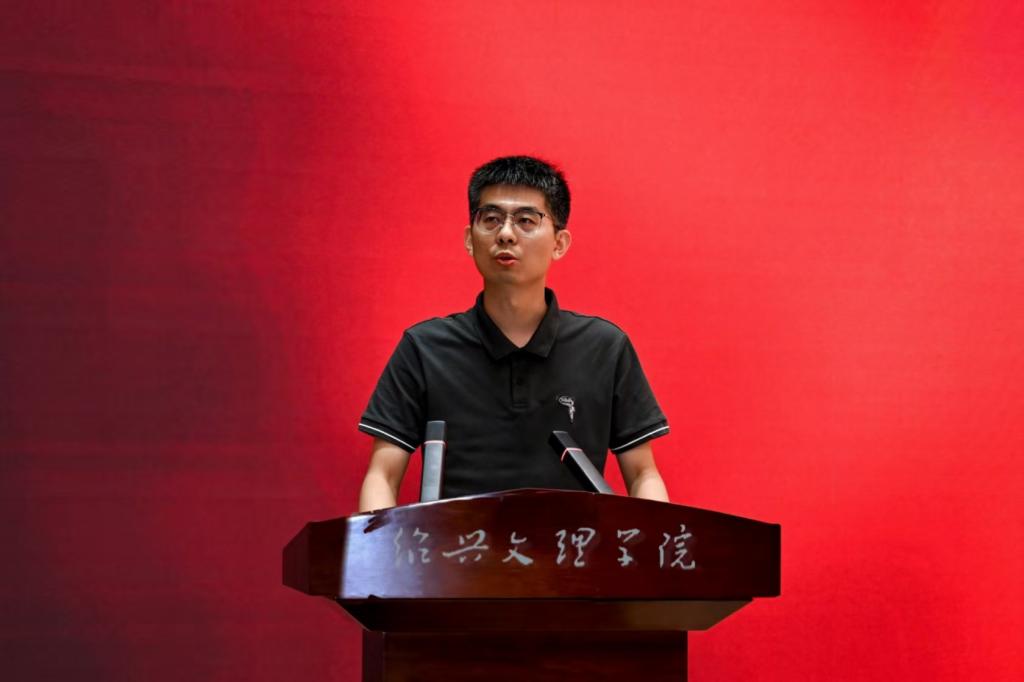 本科新生代表朱峻毅同学发言:本科阶段稳扎稳打,努力学习专业知识,积极参加学科竞赛、学术活动,于求学路上持续奔跑;研究生新生代表孙倩倩同学发言:以谦逊之心求知、以务实之态做事,以积极之姿成长,传承绍兴文理的优良校风。