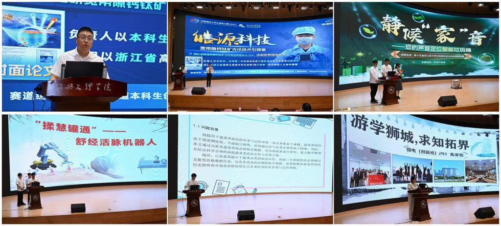 各学科竞赛基地优秀团队成果展示。数学建模竞赛基地、统计调查竞赛基地、物理科技创新竞赛基地、智能机器人竞赛基地获奖项目师生代表、学生创新大赛获奖项目师生代表、新加坡暑期游学团队代表依次上台展示。