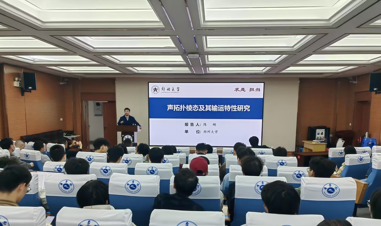优秀校友陈刚教授返回母校,为母校师生做题为《声拓扑棱态及其输运特性研究》的专题讲座,并从自己的科研成长之路出发,激励学弟学妹们在校期间要脚踏实地、刻苦钻研,勇攀科学高峰。副院长窦卫东主持讲座,百余名师生聆听讲座。