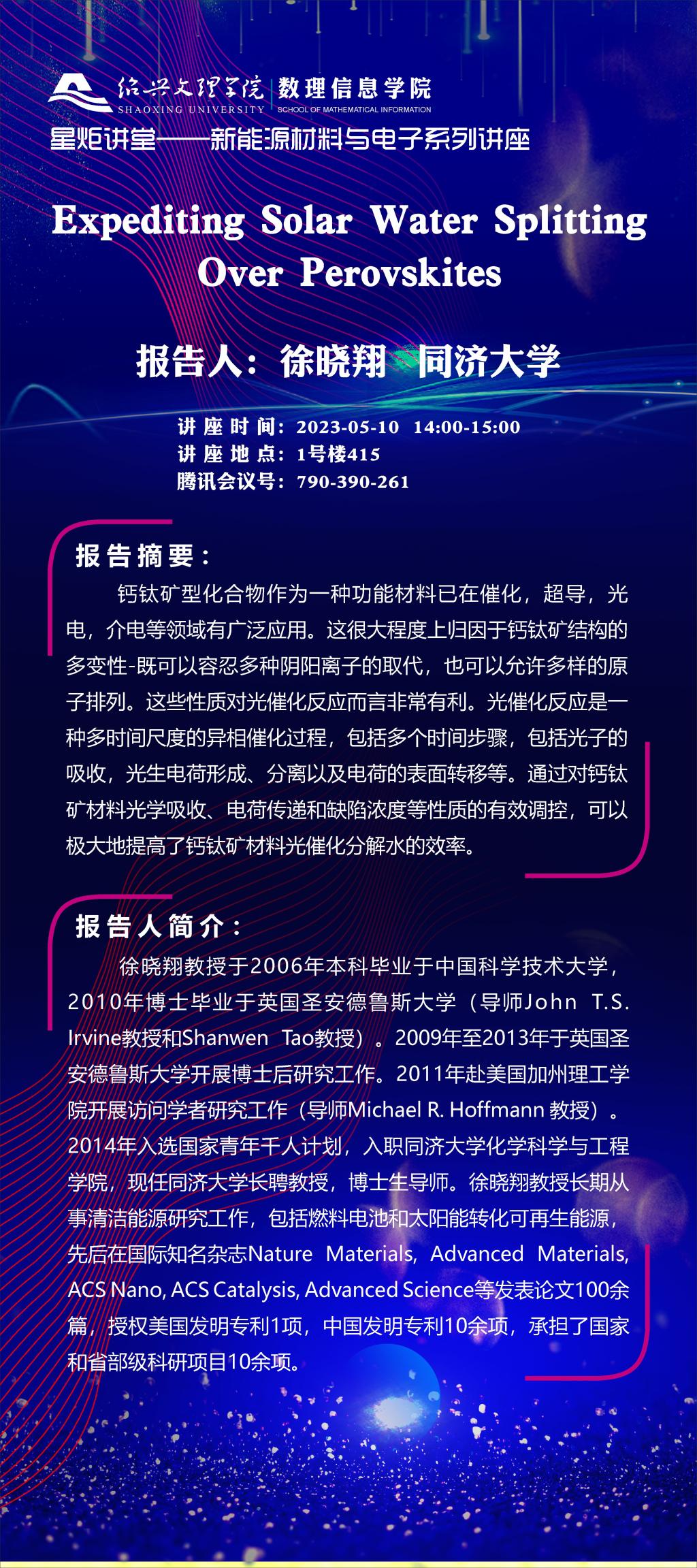 同济大学 徐晓翔教授:Expediting Solar Water Splitting Over Perovskites