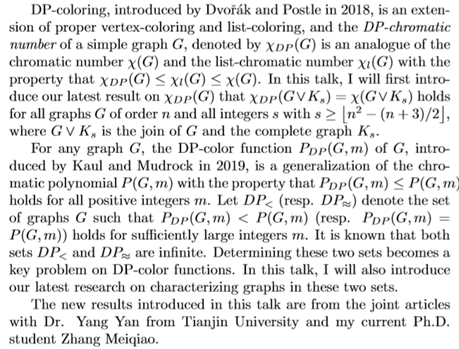 新加坡南洋理工大学 董峰明教授:DP-coloring and DP-color functions