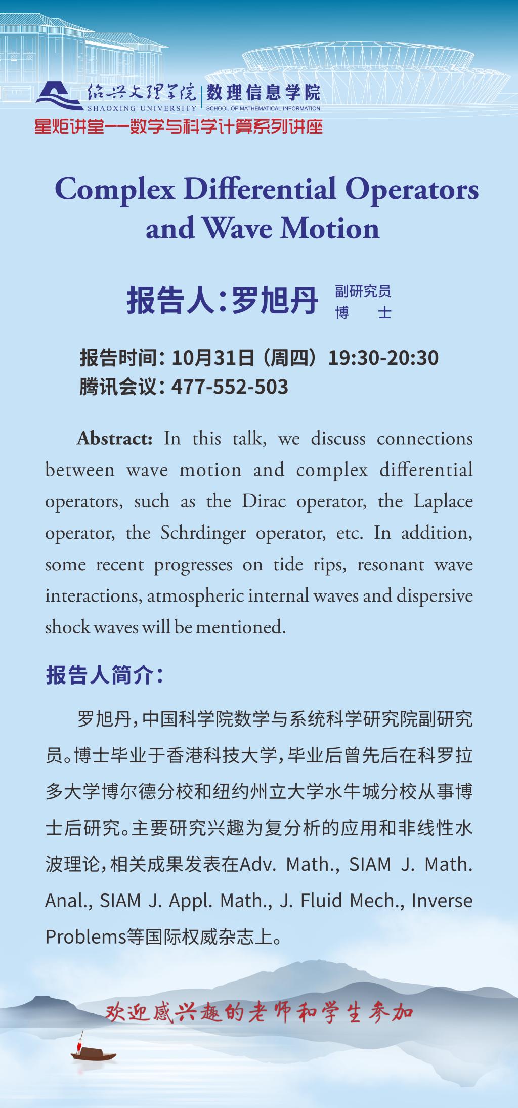 中国科逼喱逼喱 数学与系统科学研究院 罗旭丹:Complex Differential Operators and Wave Motion