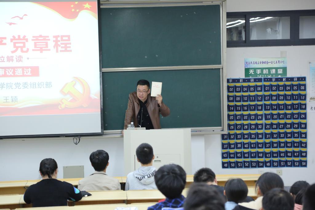 10月29日晚,由党员之家培训部组织的第四十六期入党积极分子学习班专题辅导第三讲于南山6号楼A207举行。校党委组织部组织科科长王颖老师引领本期积极分子学员对十九大审议通过的《中国共产党章程》进行了全方位解读。