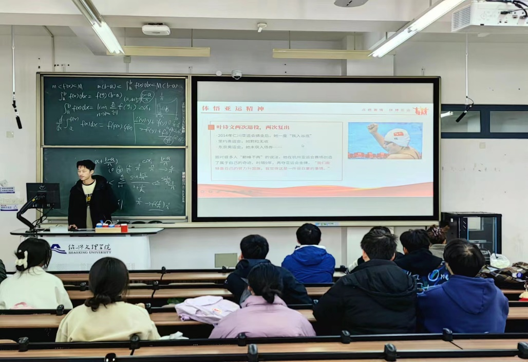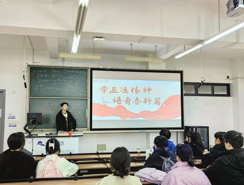 会议上,汤佳乐同学以00后赛艇运动员邹佳琪和游泳运动员叶诗文为例,向同学们展现了奖牌的来之不易。每一块奖牌的背后都是数不尽的汗水。以运动员的经历来启发同学们,在日常的学习生活和工作中,也应该和运动员一样,不怕苦不怕累,心中常怀理想和信念。