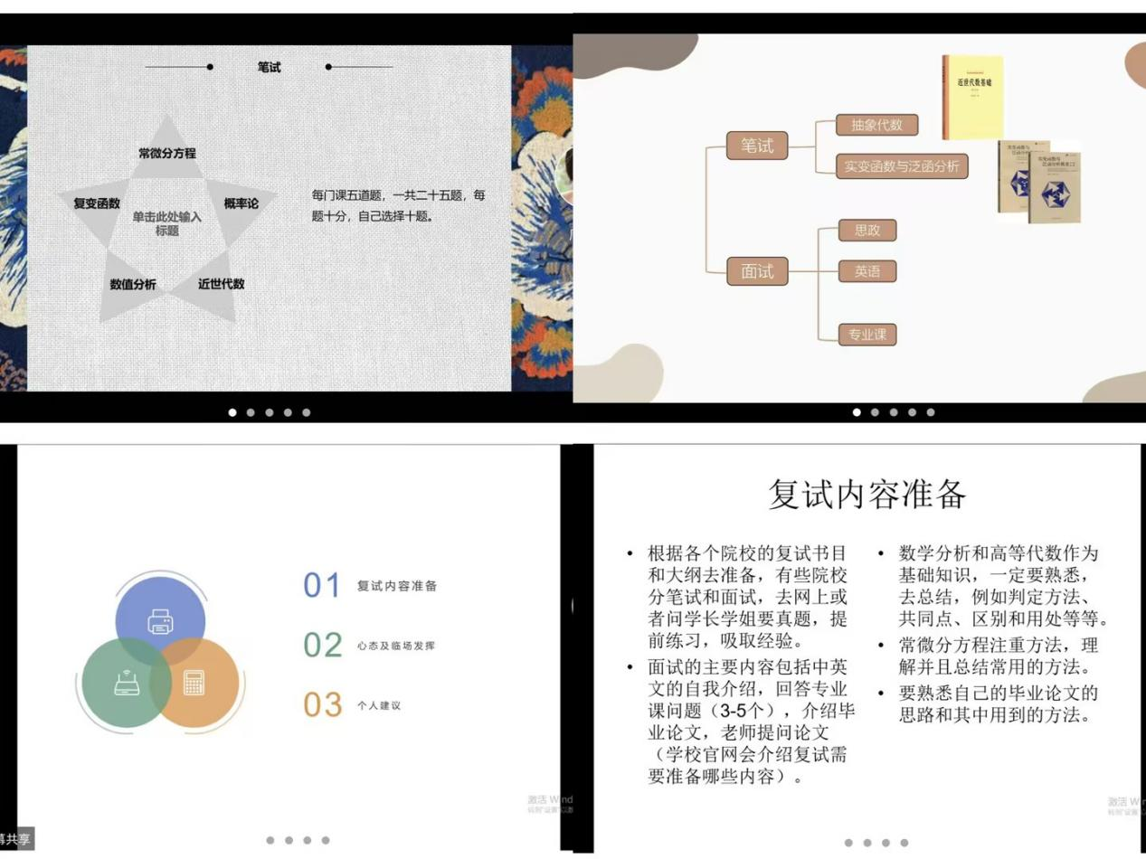 以线上形式举行了数学专业考研经验分享会。本次分享会邀请到数学专业考研导师组长周凤燕老师、逼喱逼喱