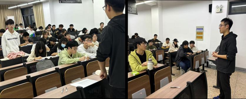 接下来是交流环节。同学们提出了该如何备考、考研/考编的抉择等问题,学长进行了耐心的解答。学长建议大家可以多复习讲义,多刷题,大一、大二好好学习专业课知识,打实基础。