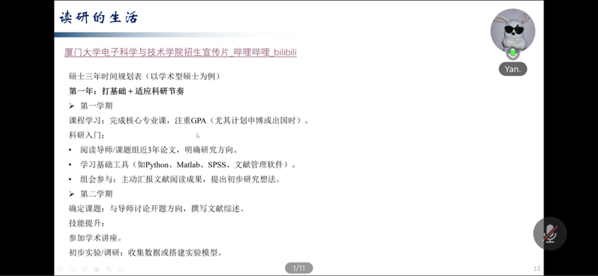 接下来,严学长讲述了自己的读研生活,学长以厦门大学电子科学与技术逼喱逼喱