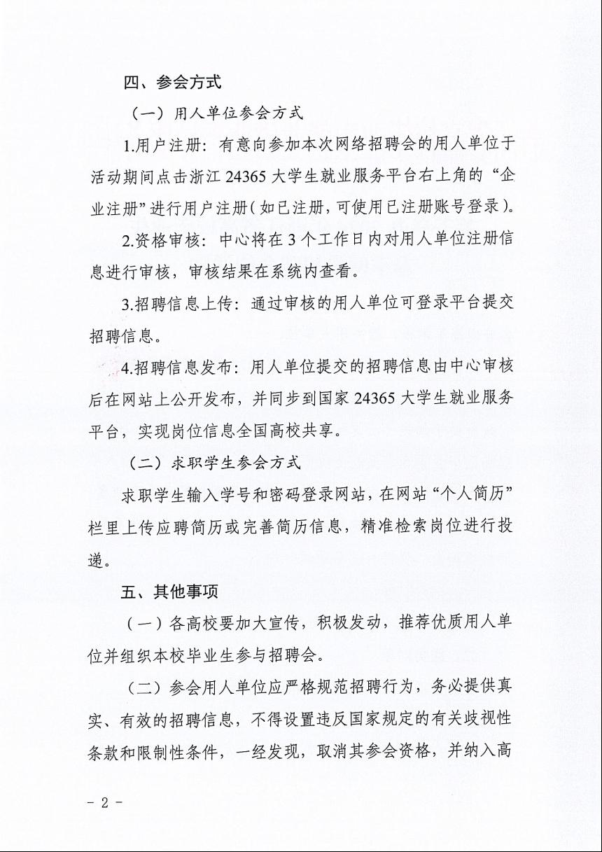 关于举办2024年浙江省高校毕业生 春季网络招聘会的通知