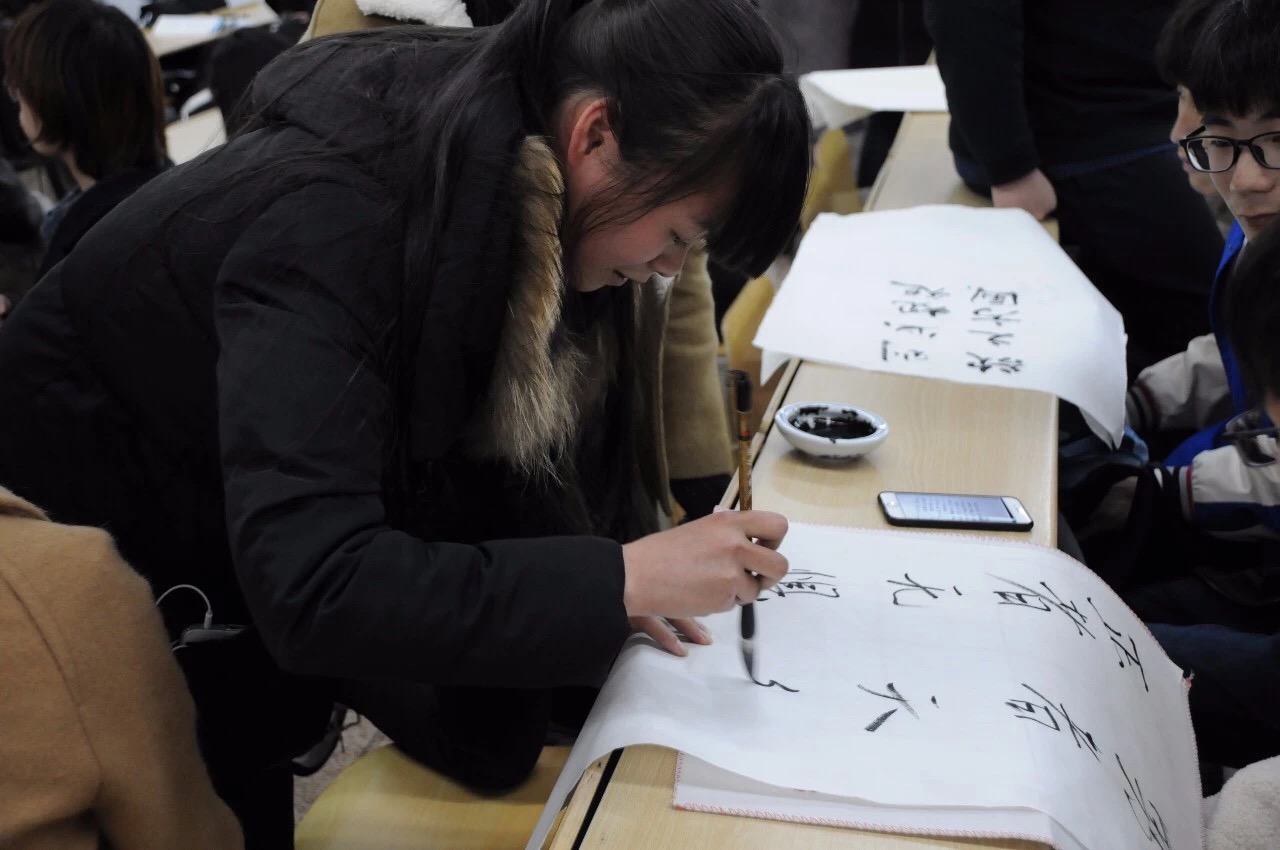 在书墨气息中的学习时光显得有些短暂,但是趣味十足。在学习书法的同时,我们也学到了“得其大者可以兼其小”,“不以一毫私意自蔽,不以一毫私欲自累”,“欲知平直,则必准绳;欲知方圆,则必规矩”,“正者无惧,勇者天行”等名言中蕴含的韵味。