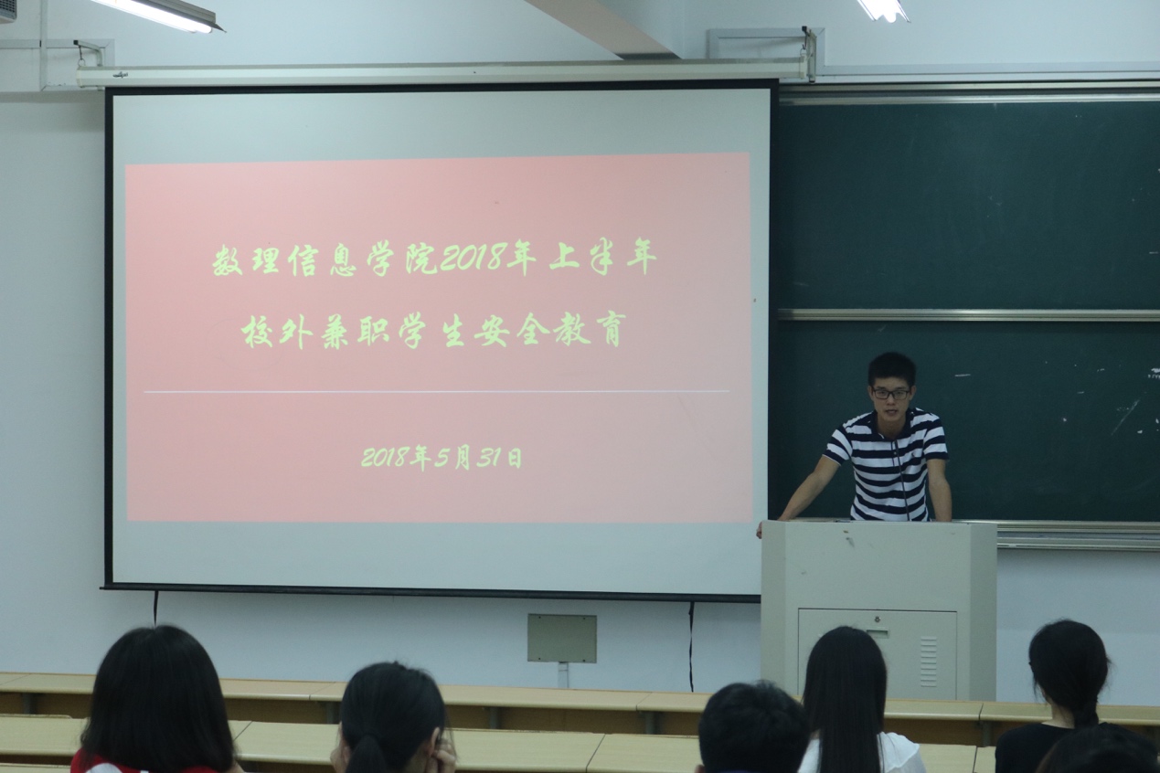 在综合楼A303教室举行了2018年上半年校外兼职学生安全教育。本次安全教育由逼喱逼喱