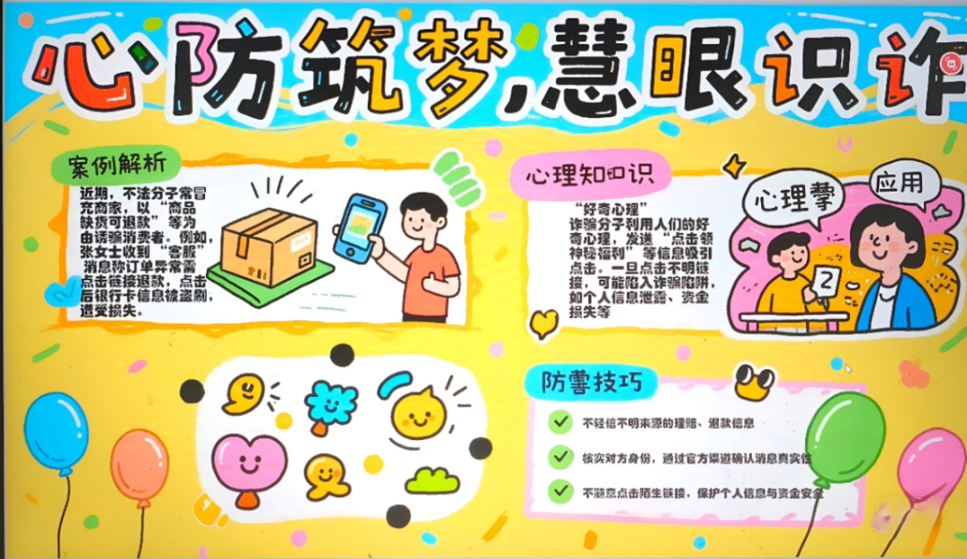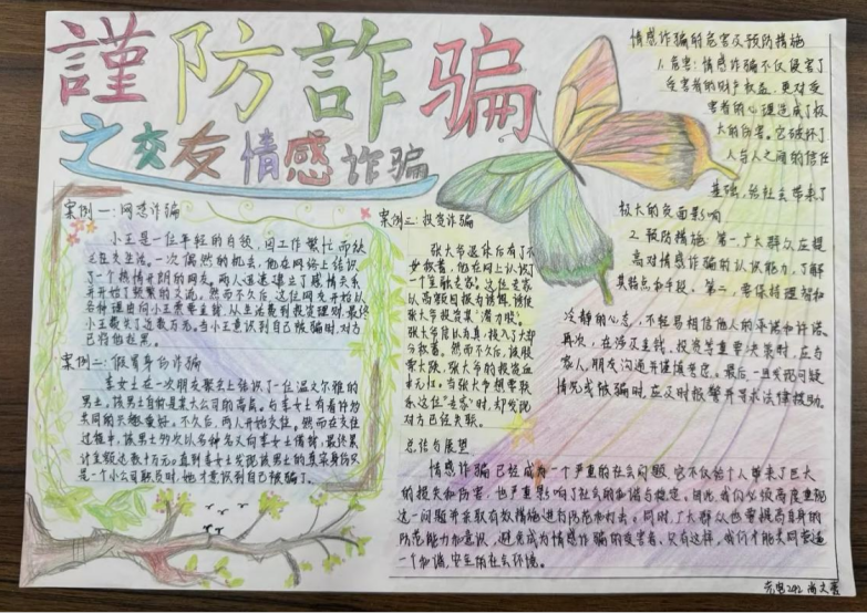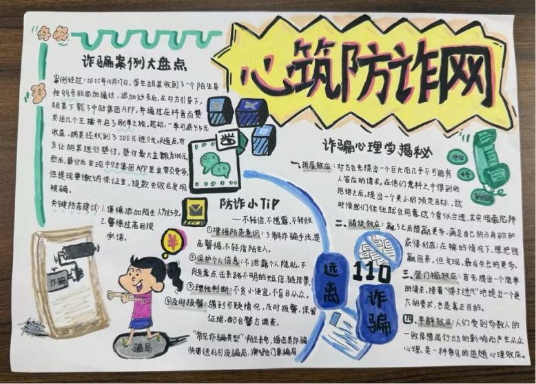此次手抄报征集活动,不仅锻炼了同学们的动手能力和创造力,更重要的是,通过创作过程,同学们对诈骗案例背后的心理学原理有了更深刻的理解,有效提升了识别诈骗陷阱的能力