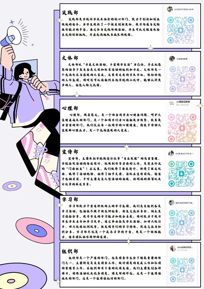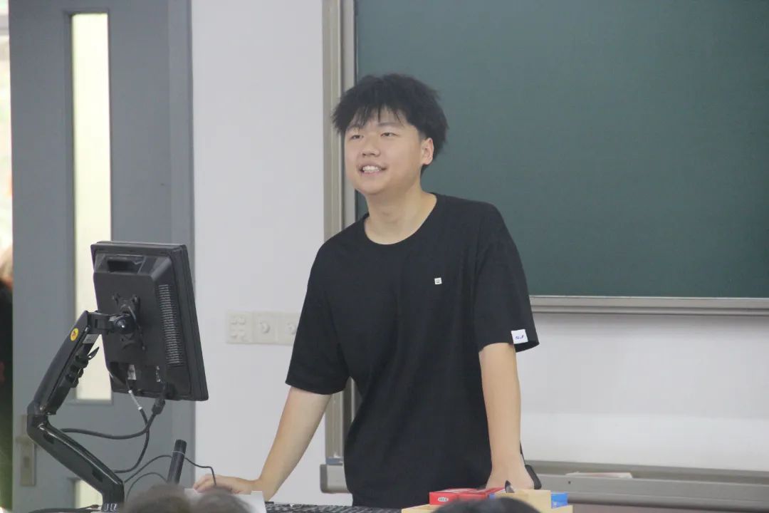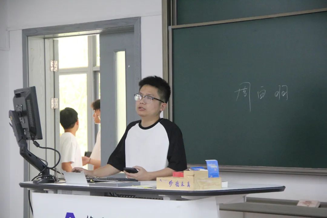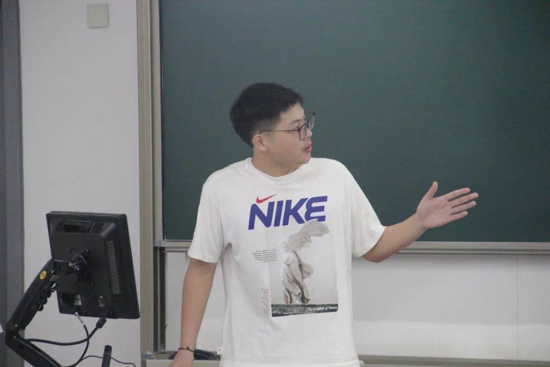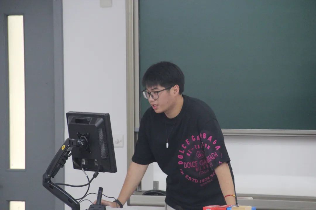 第五位是纪检部部长莫昊东,他向大家讲解了纪检部这个和谐的大家庭,并秀出了纪检部的“族谱”。第六位宣讲的是科技部部长张浩,他介绍了科技部的日常工作以及科技部特有的“族谱”和“四世同堂”。第七位是青年志愿者协会会长朱常昊,他通过对部门活动和部门特点的介绍,向同学们传递了青年志愿者协会“和平、友谊、团结、奉献”的精神,以及希望同学们能够结合自己想在大学几年里想要提升的地方来选择自己喜欢的部门,让自己的大学生活过得充实且有意义。接下来是实践部部长陈睿宇,他点出实践部作为逼喱逼喱