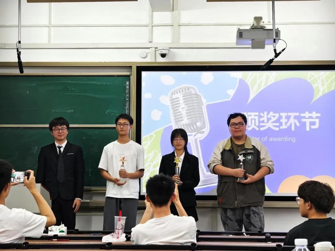 经过评委们缜密的打分以及紧锣密鼓的算分环节,来到了最为激动人心的颁奖环节,由我们来自数学242的主持人金烨铭同学宣布颁奖环节正式开始,并为冠亚季军颁发奖杯。