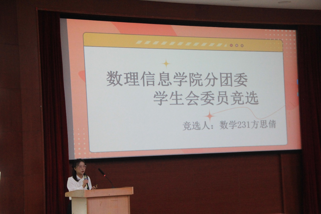 审议结束之后,大会开始候选人竞选展示,每个候选人都自信满满地从不同角度展开竞选演讲,让台下的师生领略到了候选人各方面的能力,以及感受到了候选人对部门的不变的诚心。