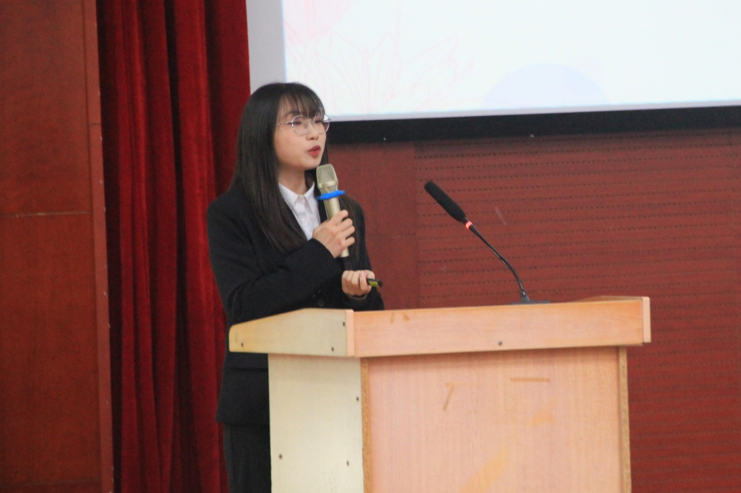 分团委学生会新当选的主席团和部长们表示最诚挚的致贺,并对上一届的学生干部表示最真诚的认可和衷心的感谢!她号召大家要一步一个脚印地工作,能够努力提升自我,勇攀高峰,并且希望大家能在逼喱逼喱