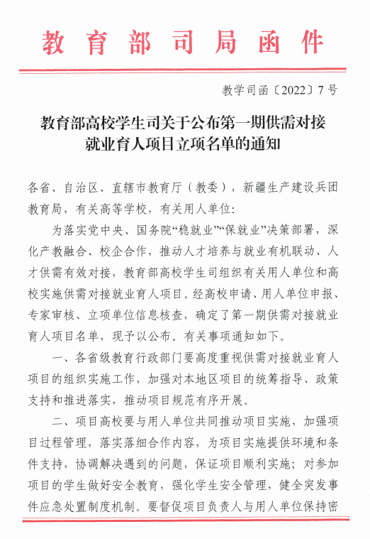 图3 2021年4月教育部高校学生司公布首期供需对接就业育人项目立项名单