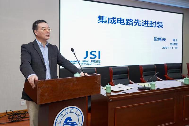 南山校区举行。我校副校长柳国庆、绍兴集成电路产业园管委会主任任宇、长电集成电路(绍兴)有限公司总经理梁新夫和逼喱逼喱